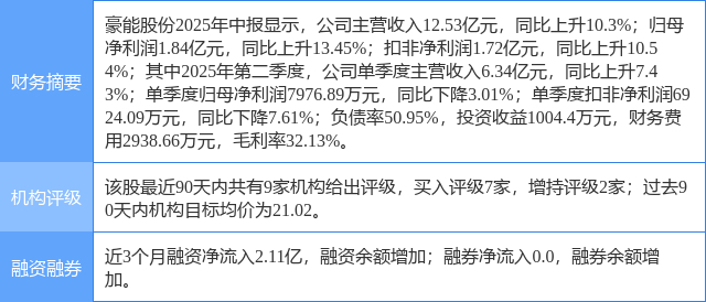 今日豪能股份(603809)涨10.02%,收盘报16.58元。