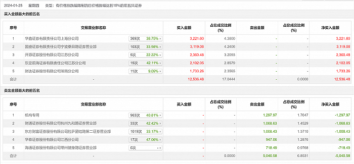 1月25日,丰山集团今日涨停,龙虎榜数据显示,上榜营业部席位全天成交1.76亿元,占当日总成交金额比例为23.9%。其中,买入金额为1.25亿元,卖出金额为5040.58万元,合计净买入7495.9万元。