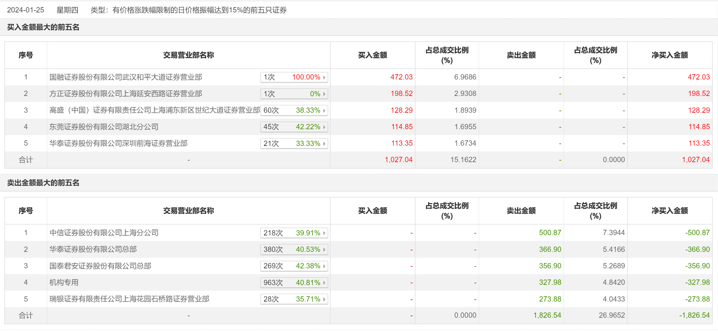 1月25日,原尚股份今日涨7.24%,全天换手率达5.1%,振幅达17.22%。龙虎榜数据显示,营业部席位合计净卖出799.5万元。其中,机构合计净卖出327.98万元。此外,国融证券武汉和平大道证券营业部、方正证券上海延安西路证券营业部分别买入472.03万元、198.52万元;中信证券上海分公司、华泰证券总部分别卖出500.87万元、366.90万元。