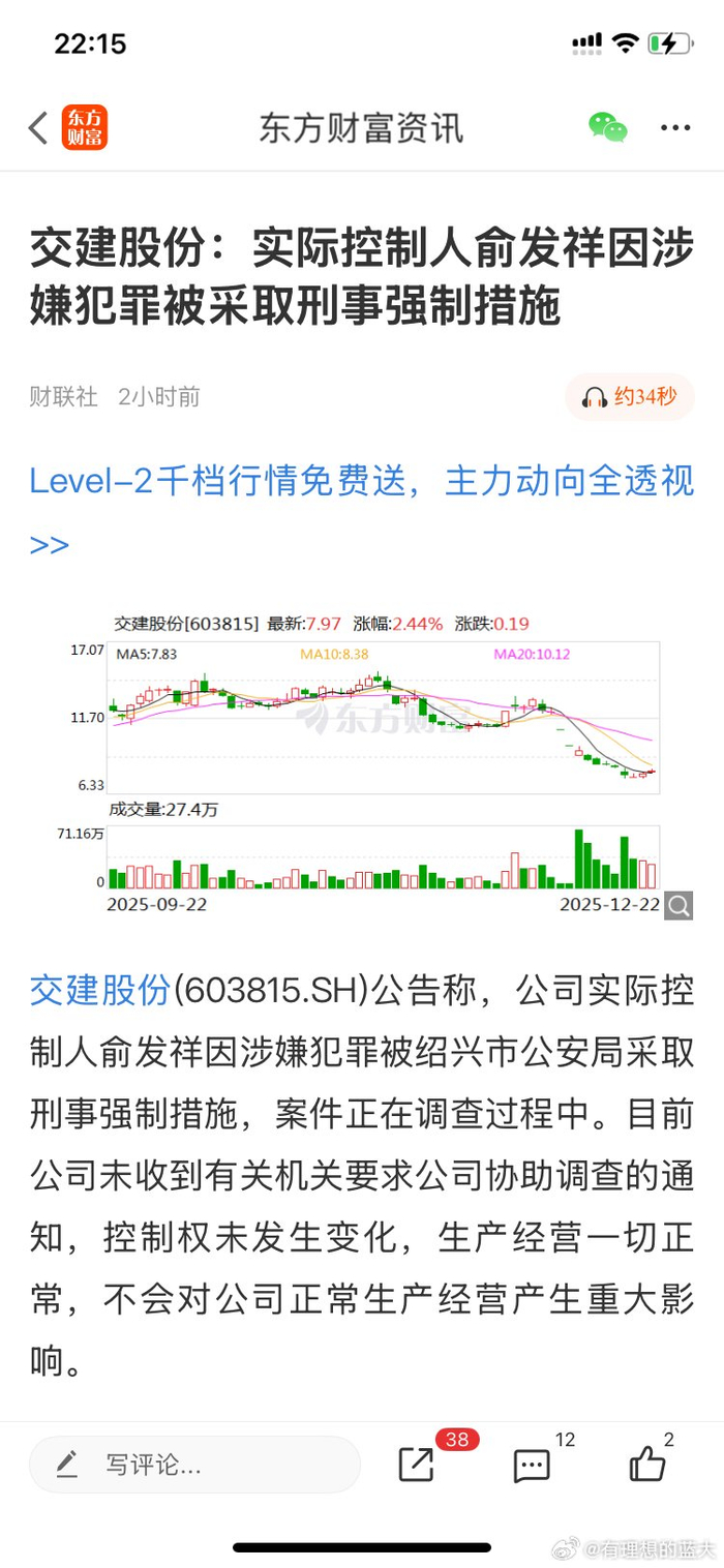 交建股份:实际控制人俞发祥因涉嫌犯罪被采取刑事强制措施