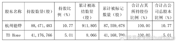11 月 6 日晚间,顾家家居(603816)一份股份冻结公告在资本市场引发热议。这家市值 250.4 亿元的家居巨头披露,持股 10.77% 的股东杭州德烨嘉俊企业管理有限公司(前身为顾家集团),因 4.34 亿元债权纠纷,所持 8847.15 万股股份被河北省衡水市中级人民法院轮候冻结,冻结起始日为 11 月 5 日。更值得关注的是,另一持股 5.01% 的股东 TB Home Limited 所持 4117.68 万股股份同样处于全额冻结状态,两大股东合计 15.78% 的公司总股本被彻底锁定。