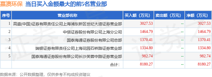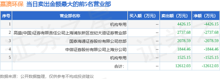 11月20日嘉澳环保(603822)龙虎榜数据:机构净卖出5951.3万元