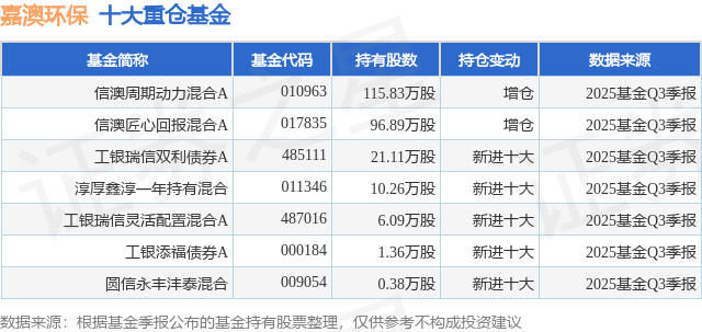 根据2025基金Q3季报公募基金重仓股数据,重仓该股的公募基金共7家,其中持有数量最多的公募基金为信达澳亚基金的信澳周期动力混合A。信澳周期动力混合A目前规模为8.05亿元,最新净值1.8042(11月20日),较上一交易日下跌1.28%,近一年上涨50.45%。该公募基金现任基金经理为吴清宇 张明烨。吴清宇在任的基金产品包括:信澳景气优选混合A,管理时间为2021年12月21日至今,期间收益率为57.19%;信澳优势产业混合A,管理时间为2023年5月29日至今,期间收益率为117.98%;信澳匠心严选一年持有混合A,管理时间为2024年11月29日至今,期间收益率为83.3%。张明烨在任的基金产品包括:信澳匠心回报混合A,管理时间为2024年3月11日至今,期间收益率为105.77%;
