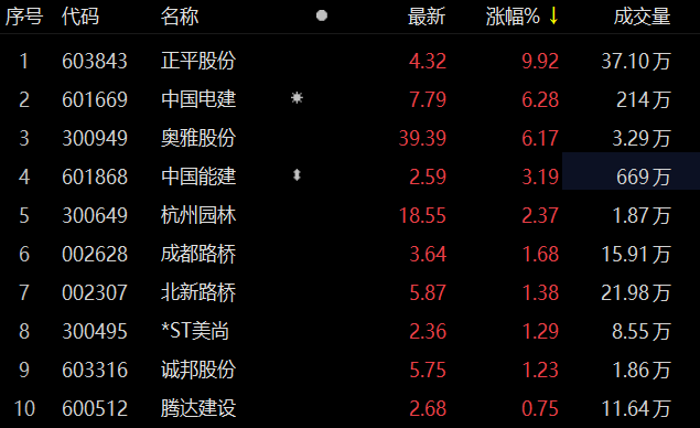 上证报中国证券网讯 4月13日,基础建设板块震荡走强,截至13:20,正平股份涨停,中国电建、澳亚股份等涨超6%。
