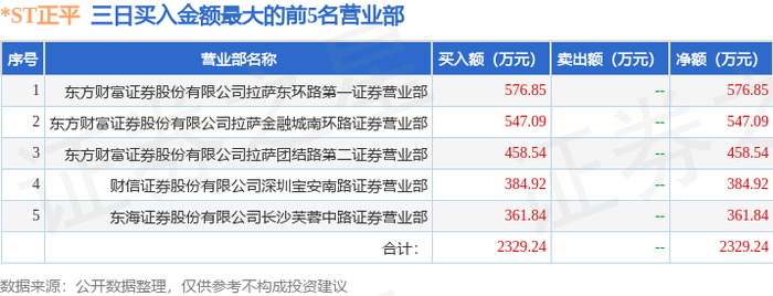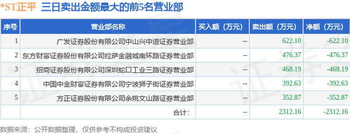 12月29日*ST正平(603843)龙虎榜数据