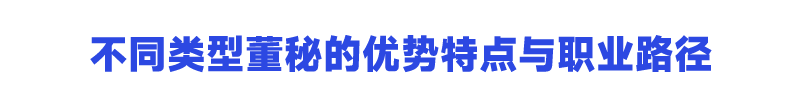 现代社会分工已十分细致,这要求专业人士做专业事情。但同时对高级人才的要求却是复合型人才。既然选择了董办这一职业路径的小伙伴,必然要求成为复合型人才。董事会秘书,从目前来看是董办这一职业路径的目标,要求懂法律、懂财务、懂行业、懂经营、懂资本市场,既能说会道又要形象好,典型的复合型人才。但还是会有不同的类型,大致可以分为以下几种:
