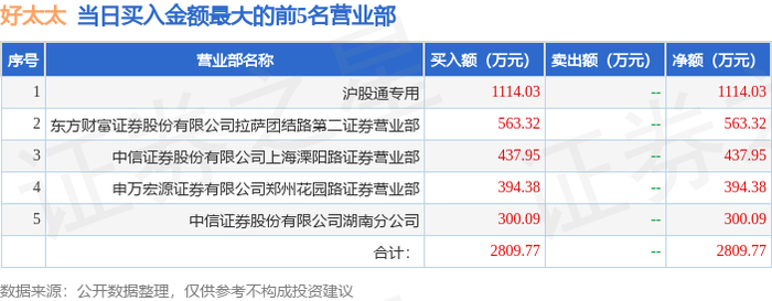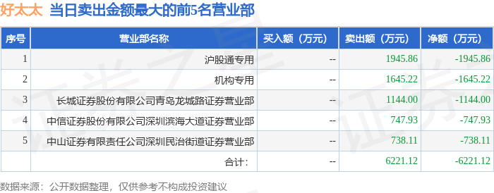 9月29日好太太(603848)龙虎榜数据:游资上海溧阳路上榜