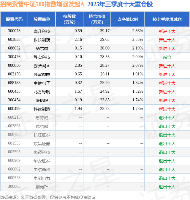 招商资管中证500指数增强发起A的前十大重仓股如下: