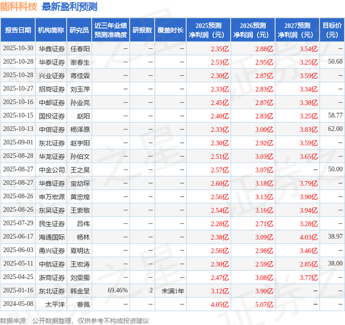 民生证券股份有限公司吕伟,白青瑞近期对能科科技进行研究并发布了研究报告《2025年三季报点评:战略聚焦提升盈利能力,前瞻布局灯塔工厂》,给予能科科技买入评级。