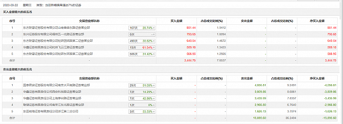 具体来看,知名游资现身龙虎榜,作手新一(国泰君安证券南京太平南路证券营业部)、华鑫证券西安科技路证券营业部分别卖出4056.81万元、3809.86万元;东方财富证券山南香曲东路证券营业部、东兴证券福州五一北路证券营业部分别买入851.44万元、793.65万元。
