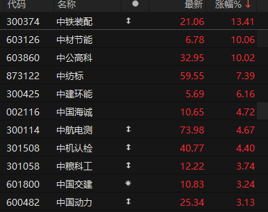 上证报中国证券网讯 12月18日早盘,中字头股票表现活跃。9时34分,