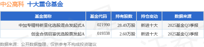持有中公高科最多的基金为中加专精特新量化选股混合发起式A,目前规模为1.97亿元,最新净值1.5777(10月30日),较上一交易日下跌0.73%。该基金现任基金经理为林沐尘。