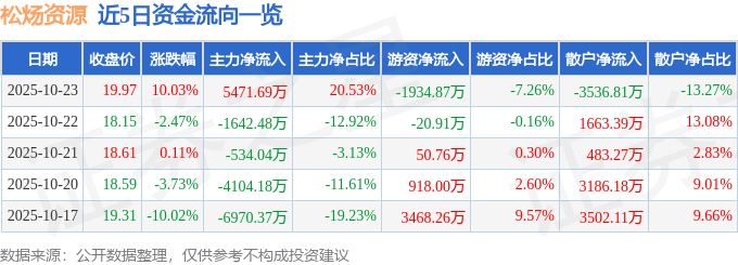 10月23日松炀资源(603863)涨停分析:减亏增效、业务拓展驱动