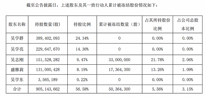 (来源:公司公告)此外,根据桃李面包8月23日的公告,吴志刚、盛雅莉累计被冻结股份数量分别为3300万股、1736万多股,占各自持股比例分别为22%、13%,冻结到期日为2026年8月。