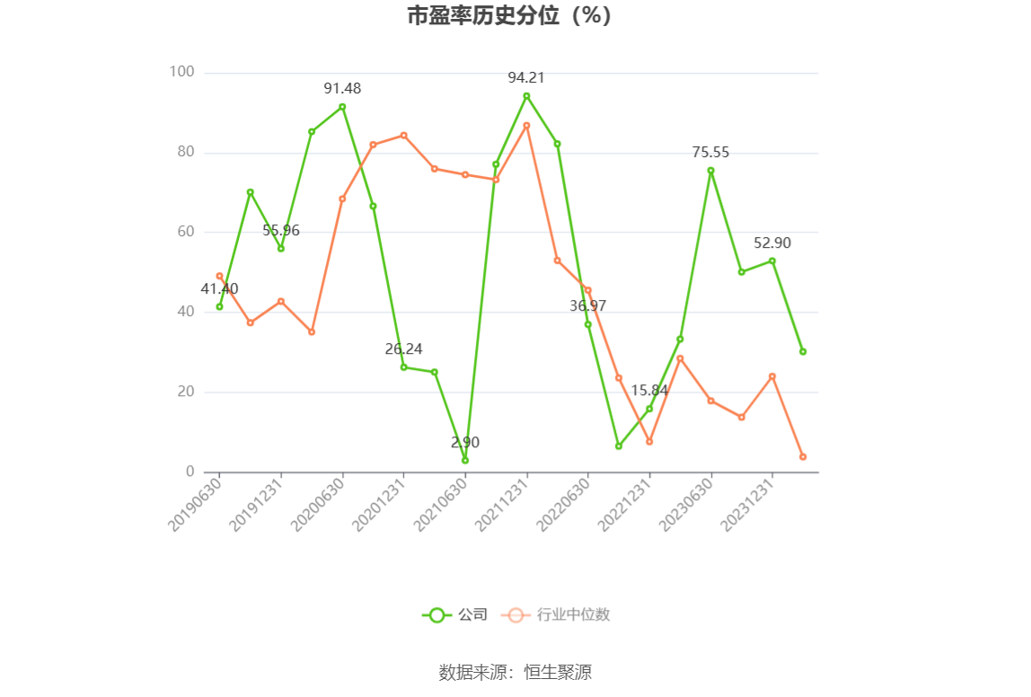 市盈率为负时,不显示当期分位数,会导致折线图中断。