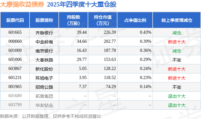根据2025基金年报公募基金重仓股数据,重仓该股的公募基金共1家,其中持有数量最多的公募基金为摩根士丹利基金的大摩强收益债券。大摩强收益债券目前规模为5.27亿元,最新净值1.3869(3月13日),较上一交易日下跌0.12%,近一年上涨4.29%。该公募基金现任基金经理为施同亮。施同亮在任的基金产品包括:大摩优质信价纯债A,管理时间为2017年1月9日至今,期间收益率为35.53%;大摩丰裕63个月开放债券,管理时间为2020年11月4日至今,期间收益率为20.77%;大摩安盈稳固六个月持有债券A,管理时间为2022年7月29日至今,期间收益率为16.49%。