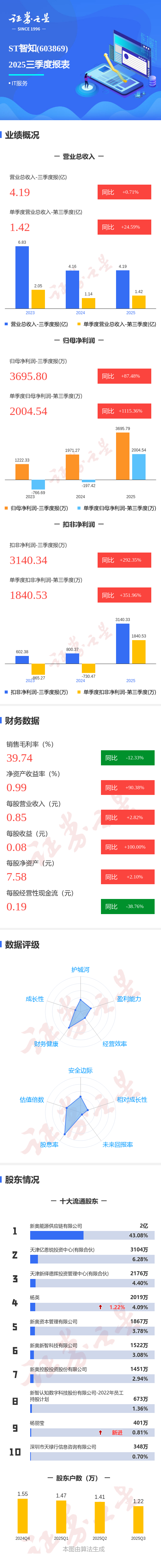 图解ST智知三季报:第三季度单季净利润同比增长1115.37%