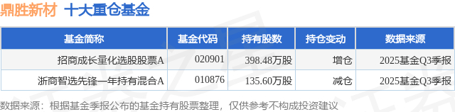 11月13日鼎胜新材涨7.14%,招商成长量化选股股票A基金重仓该股