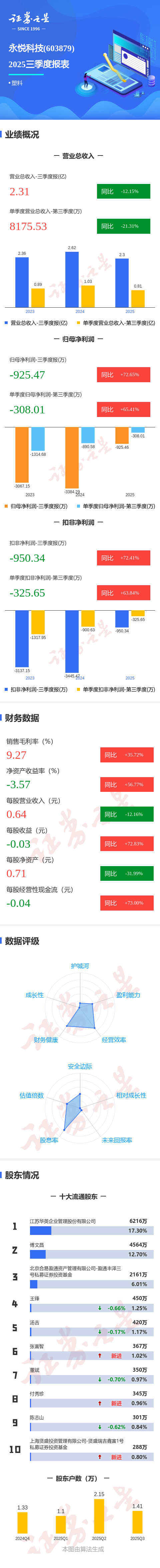 图解永悦科技三季报:第三季度单季净利润同比增长65.41%