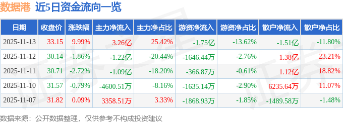 11月13日的资金流向数据方面,主力资金净流入3.26亿元,占总成交额25.42%,游资资金净流出1.75亿元,占总成交额13.62%,散户资金净流出1.51亿元,占总成交额11.8%。