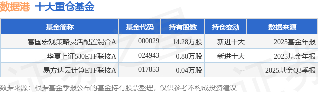 重仓数据港的公募基金请见下表:
