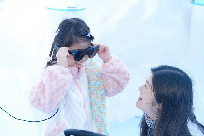 2025年12月24日,深圳前海万象商场内,市民正在体验雷鸟新款观影眼镜。(受访者供图)