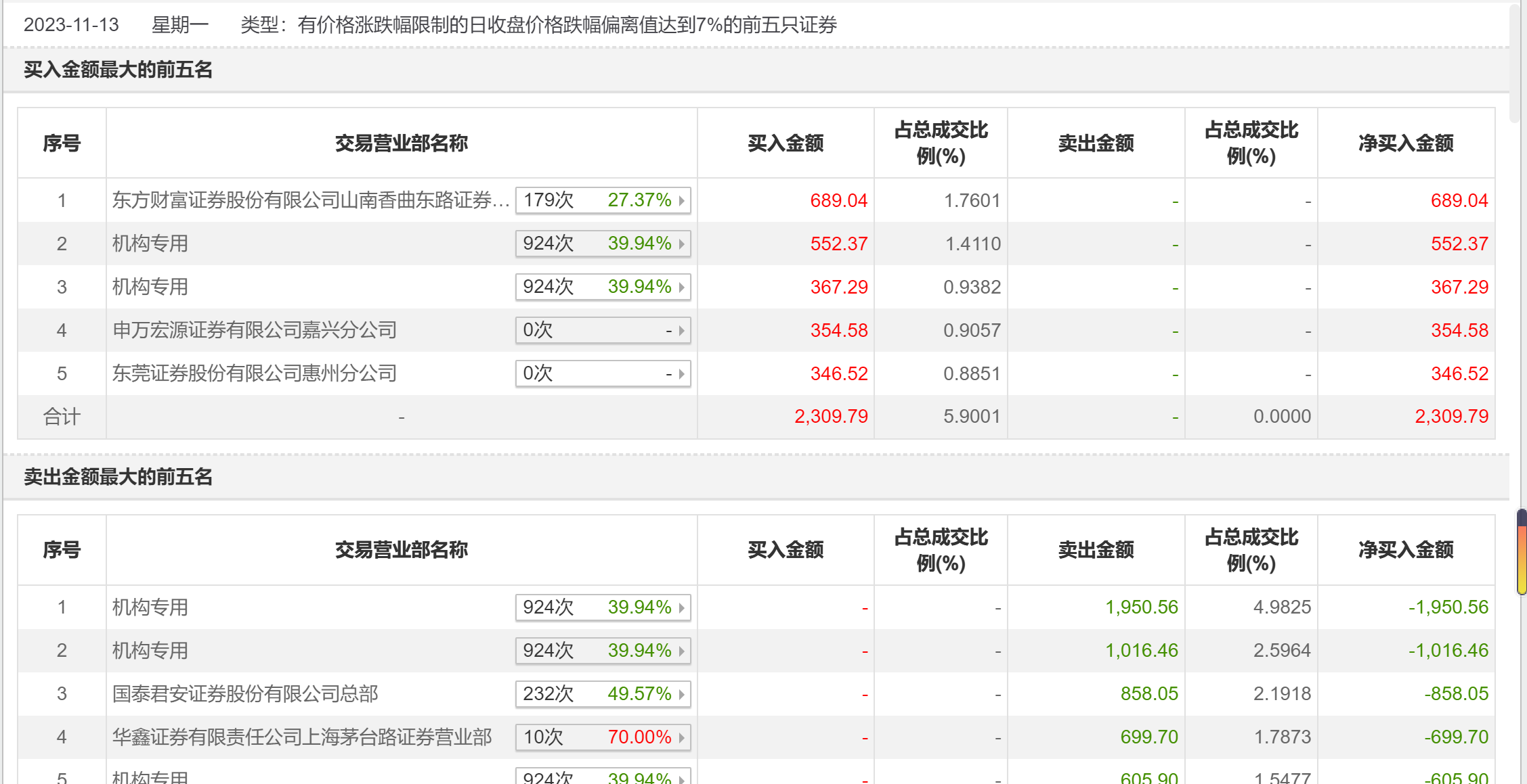 具体来看,机构买入919.66万元,卖出3572.92万元,合计净卖出2653.26万元。此外,知名游资现身龙虎榜,国泰君安证券总部、炒股养家(华鑫证券上海茅台路证券营业部)分别卖出858.05万元、699.70万元;东方财富证券山南香曲东路证券营业部、申万宏源证券有限公司嘉兴分公司分别买入689.04万元、354.58万元。