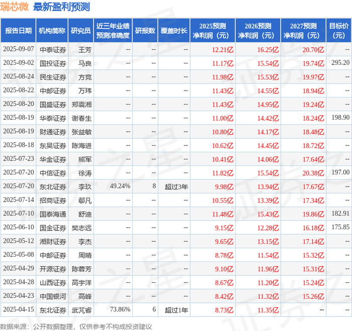 证券之星数据中心根据近三年发布的研报数据计算,东北证券武芃睿研究员团队对该股研究较为深入,近三年预测准确度均值为73.86%,其预测2025年度归属净利润为盈利8.73亿,根据现价换算的预测PE为107.57。