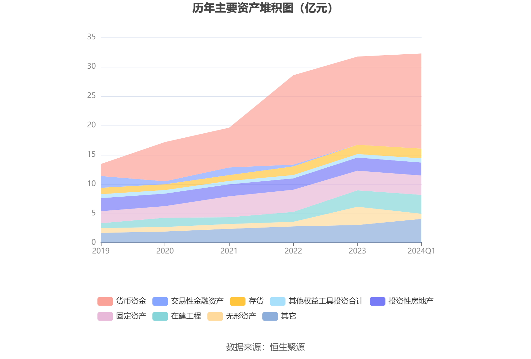 资产重大变化方面,截至2024年一季度末,公司无形资产较上年末减少71.78%,占公司总资产比重下降7.08个百分点;货币资金较上年末增加7.83%,占公司总资产比重上升2.90个百分点;其他非流动资产较上年末增加1124.94%,占公司总资产比重上升1.72个百分点;应收账款较上年末增加59.64%,占公司总资产比重上升1.64个百分点。