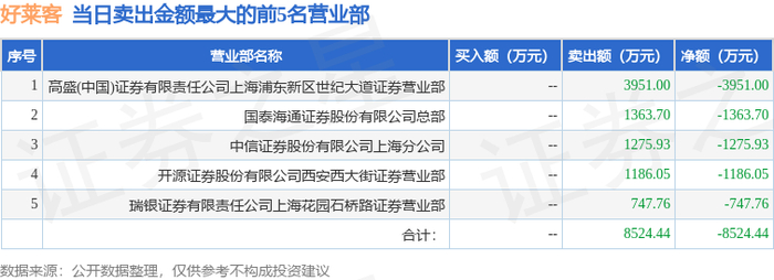 证券之星消息,沪深交易所2025年11月24日公布的交易公开信息显示,好莱客(603898)因有价格涨跌幅限制的日收盘价格跌幅偏离值达到7%的前五只证券登上龙虎榜。此次是近5个交易日内第2次上榜。