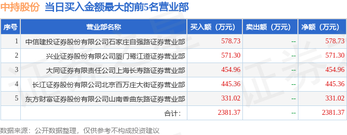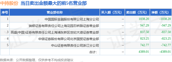 1月6日中持股份(603903)龙虎榜数据