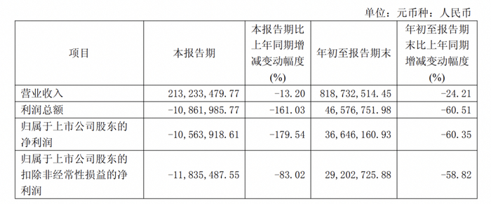 2025年前三季度,牧高笛营业收入为8.19亿元,同比减少24.21%;归母净利润为3664.62万元,同比减少60.35%。其中,第三季度营业收入为2.13亿元,同比减少13.2%;归母净亏损1056.39万元,上年同期盈利1328.08万元。