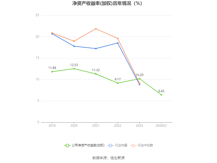 数据显示,2024年第一季度公司加权平均净资产收益率为6.43%,较上年同期增长0.82个百分点;公司2024年第一季度投入资本回报率为6.17%,较上年同期增长0.71个百分点。