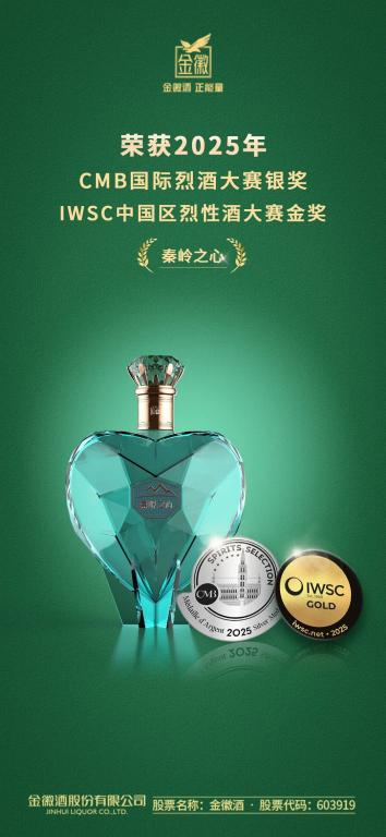 在激烈的角逐中,金徽秦岭之心不仅荣获2025年国际烈酒大赛(CMB)银奖,还摘得中国区烈性酒大赛(IWSC)金奖;清雅金徽Q7荣获中国区烈性酒大赛(IWSC)金奖;金徽老窖180、世纪金徽红五星荣获中国区烈性酒大赛(IWSC)银奖;世纪金徽白五星荣获中国区烈性酒大赛(IWSC)铜奖。此外,金徽酒股份有限公司还荣膺2025IWSC“中国白酒生产商特别嘉许奖”。这是继2024年、2022年、2018年荣获IWSC、美国旧金山世界烈酒大赛(SFWSC)、比利时布鲁塞尔国际烈性酒大奖赛后,金徽酒再次斩获国际奖项,其品质和实力得到了国际权威赛事的认可。