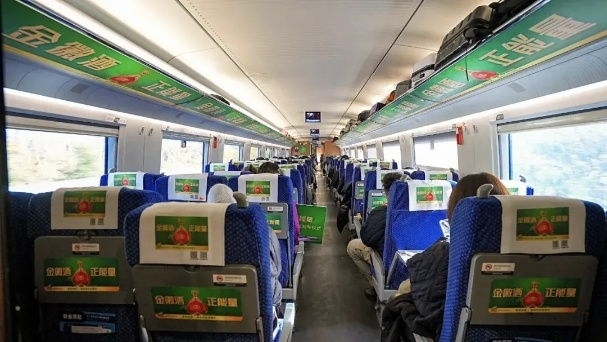 金徽酒品牌元素也将全方位闪耀旅途:醒目的外车身彩贴彰显品牌辨识度,门贴、海报传递生态酿造理念,行李架、头枕巾、桌贴形成沉浸式体验场景,滚动屏、语音播报定时传递品牌问候,八大媒体形式构建起立体化、多维度的传播矩阵,让每一位旅客在途中感受金徽酒的品牌魅力与文化底蕴。