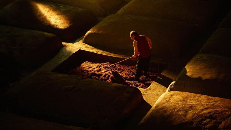 晨光微熹,古老的酒坊开始苏醒。酿酒师傅们开始了一天的劳作。当富含微生物的酒曲与精选的五谷,一同被送入一个神秘的国度——窖池。在这里,他们将与另一支微生物大军相遇。有人说:酒曲是远行的游子,窖池是守候的故乡。他们的相遇,是酿酒史上最温情的长相厮守。这里没有机械的轰鸣,只有微生物在寂静中,进行最繁忙的劳作。光阴是这场转化的唯一导演,它不催促,只是静静流淌,让微生物们有充足的时间去酝酿,去融合。当窖池重启,扑面而来的,已不再是粮食的生涩,而是沁人的芬芳。