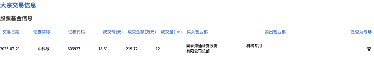中科软今日大宗交易折价成交12万股,成交额219.72万元