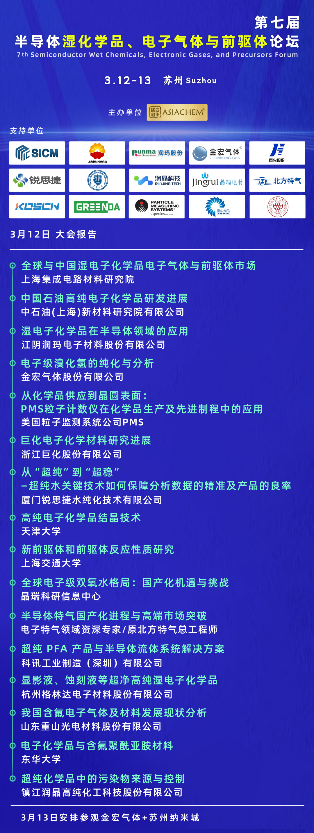 -第七届半导体湿化学品、电子气体与前驱体论坛将于2026年3月12日在苏州召开