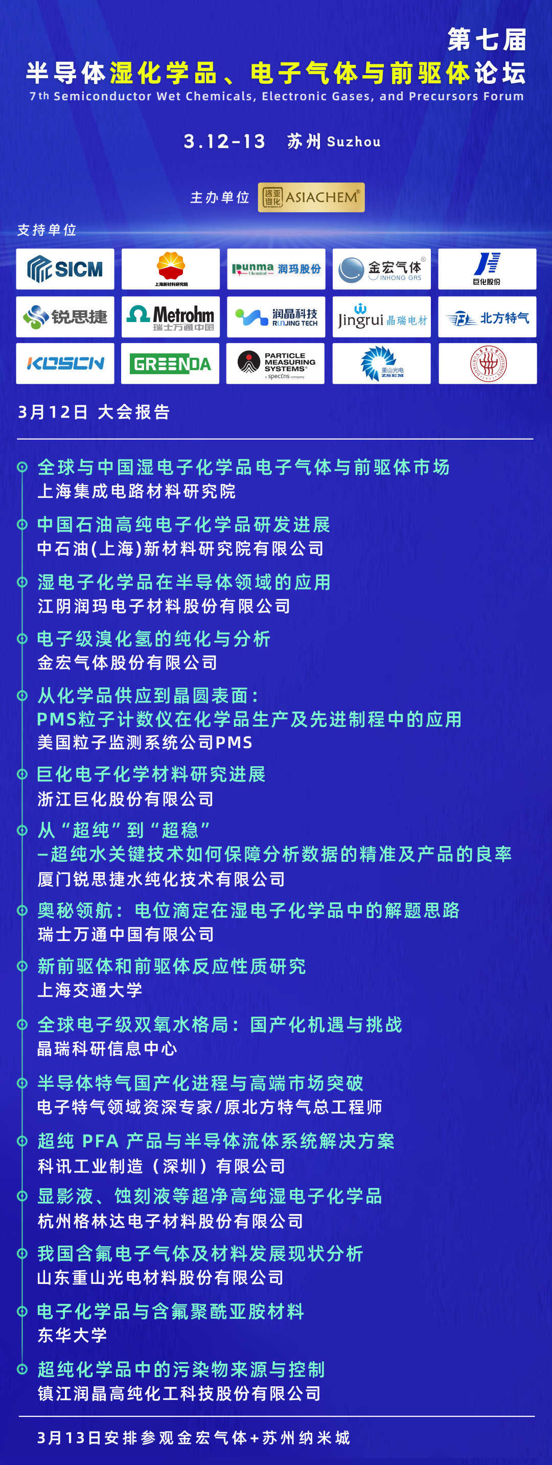 -第七届半导体湿化学品、电子气体与前驱体论坛将于2026年3月12日在苏州召开