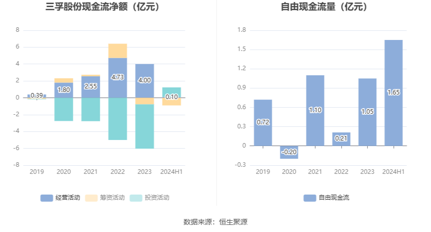 进一步统计发现,2024年上半年公司自由现金流为1.65亿元,相比上年同期增长18.07%。