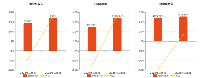 公司营业总收入为3.16亿元。归母净利润为6103.96万元。经营活动现金净流入为4575.50万元。