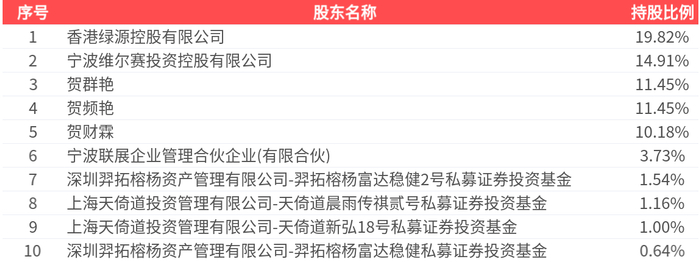 公司股东户数为2.05万户,前十大股东持股数量为1.60亿股,占总股本比例为75.86%,前十大股东持股情况如下: