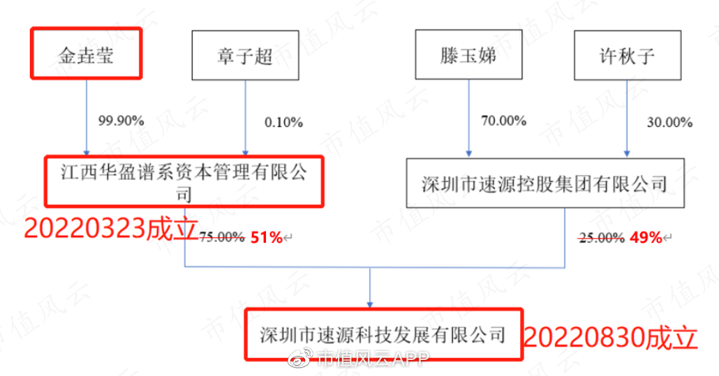 此外,在这次新的转让计划中,速源科技持股比例也发生了变化:江西华盈持股比从75%降至51%,速源控股则从25%提升至49%,实控人还是金垚莹,但其持有的速源科技股份从原来的75%降至51%。