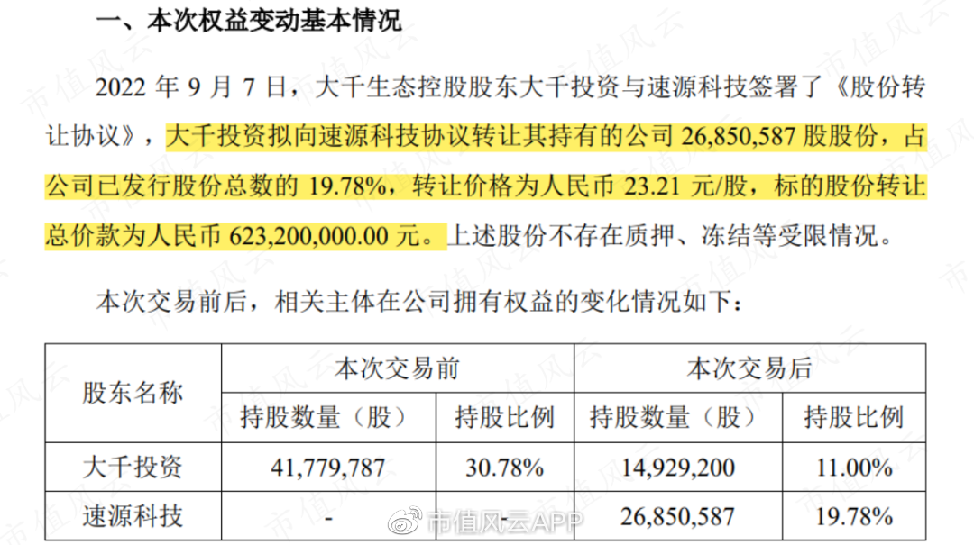 A股将迎来最年轻实控人的热度,加上满天飞的关于大千生态易主后可能会被置入锂业资产的转型期待,让这场股权转让显得异常热闹。