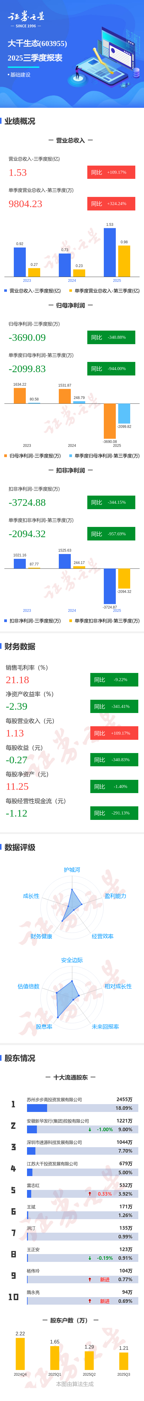 图解大千生态三季报:第三季度单季净利润同比下降944.01%
