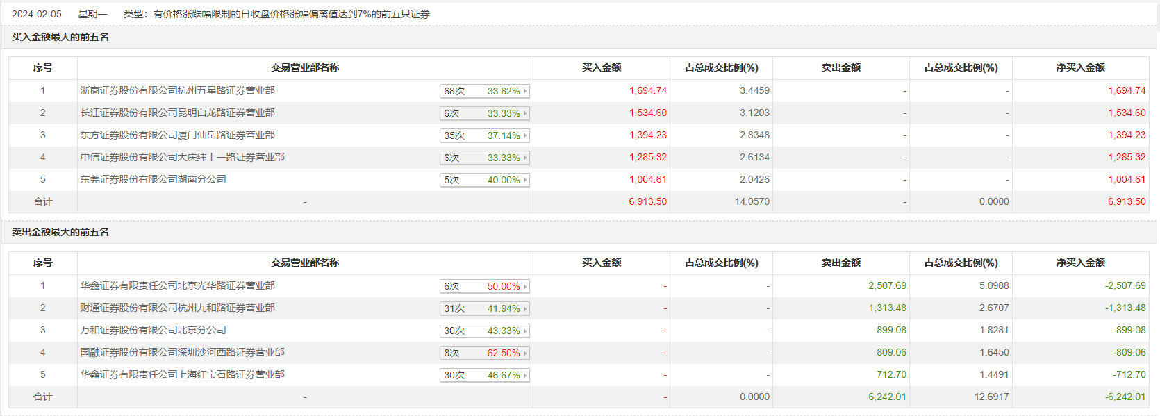 2月5日,哈森股份今日涨停,龙虎榜数据显示,上榜营业部席位全天成交1.32亿元,占当日总成交金额比例为26.75%。其中,买入金额为6913.5万元,卖出金额为6242.01万元,合计净买入671.49万元。