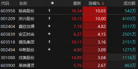 纺织服饰板块快速拉升 哈森股份、洪兴股份涨停