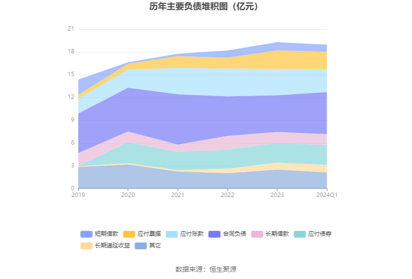 负债重大变化方面,截至2024年一季度末,公司合同负债较上年末增加14.01%,占公司总资产比重上升2.01个百分点;应付账款较上年末减少13.75%,占公司总资产比重下降1.33个百分点;应付职工薪酬较上年末减少48.24%,占公司总资产比重下降0.95个百分点;短期借款较上年末减少14.92%,占公司总资产比重下降0.46个百分点。