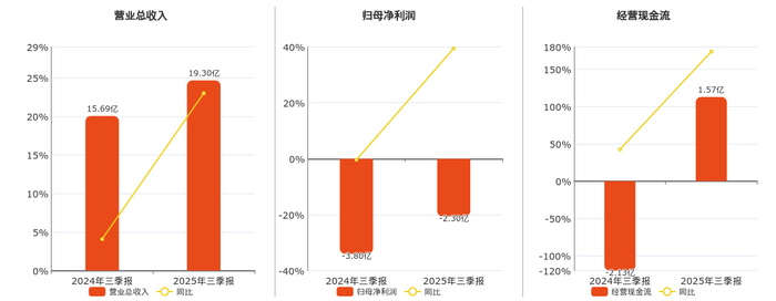公司营业总收入为19.30亿元。归母净利润为-2.30亿元,在已披露的同业公司中排名第253。经营活动现金净流入为1.57亿元。