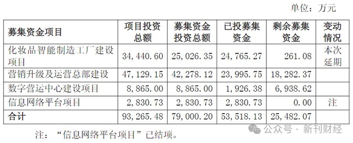 丸美生物的合规危机还体现在募投项目管理的混乱与战略执行的失序上。自上市以来,丸美生物IPO承诺的募投项目屡屡出现问题,仅有一个中途变更的项目勉强结项,其余项目均多次延期且未达预期。